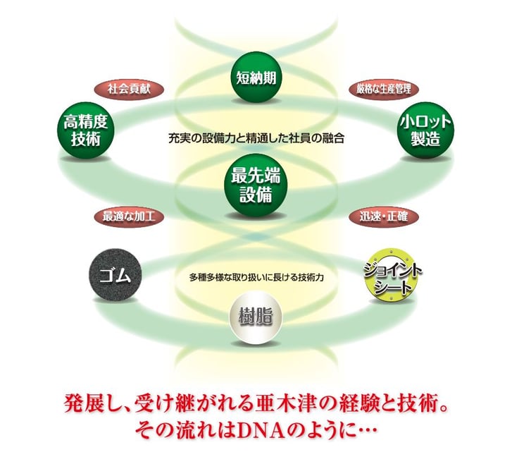 アキツでは、1978年に創業以来、工業用及び一般産業用のゴム製品・パッキン及びガスケット製品の製造販売に取り組んでまいりました。